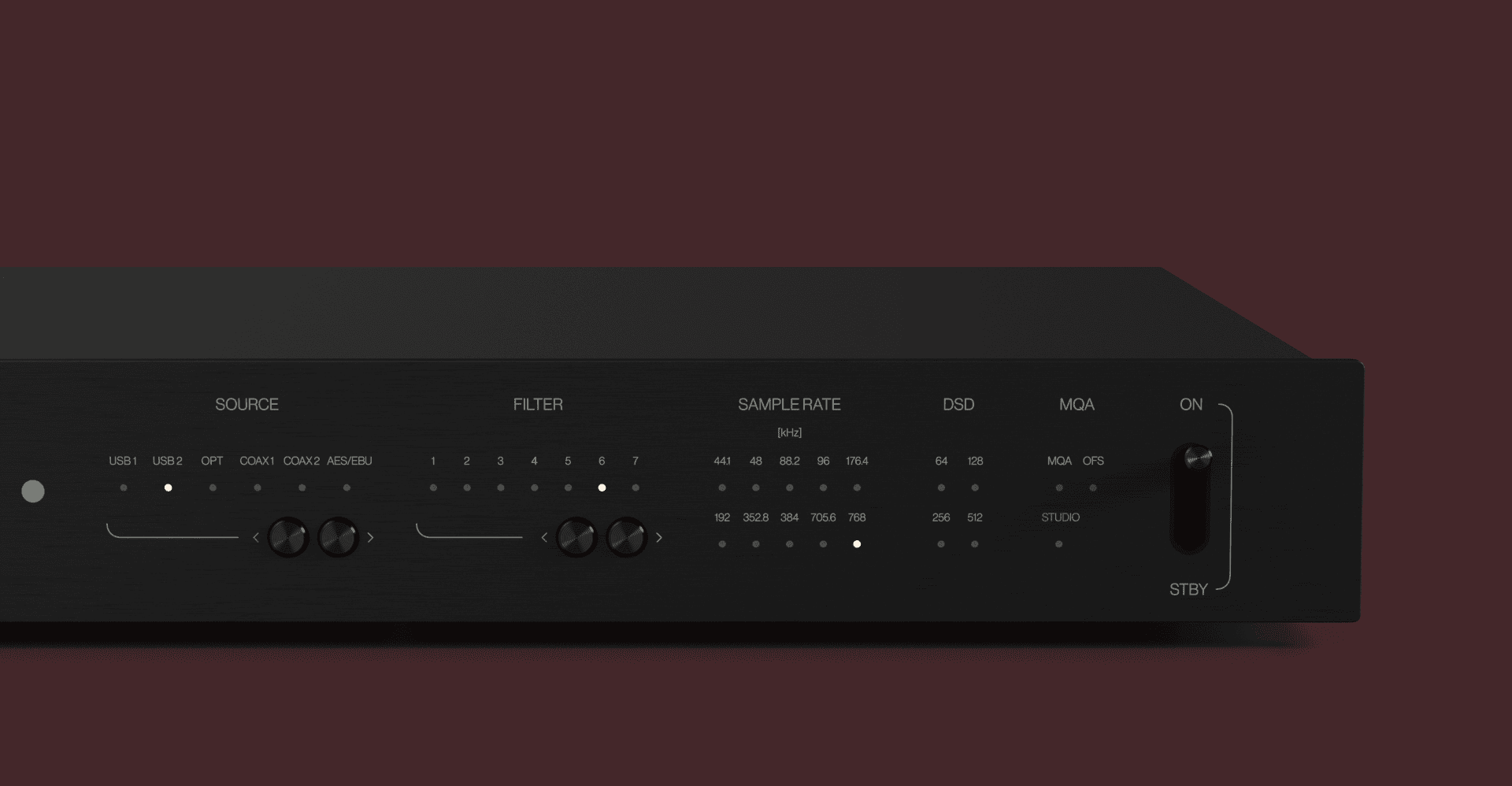 DAC obsługuje szeroki zakres formatów audio – PCM do 768 kHz/32-bit przez USB oraz do 192 kHz/24-bit przez wejścia koncentryczne, optyczne i AES/EBU. Przez USB dostępne jest natywne DSD do DSD512 oraz DoP do DSD256, a przez S/PDIF – DoP do DSD64. Urządzenie wyposażono też w pełny dekoder MQA (z funkcją renderera), obsługujący zarówno pliki MQA, jak i MQA Studio, a także sygnały OFS dekodowane zewnętrznie. Do wyboru jest siedem filtrów PCM, które pozwalają subtelnie kształtować charakter brzmienia.