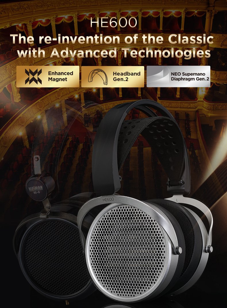 HE600 zachowują charakterystykę brzmienia oryginału przy napędzaniu mocnym wzmacniaczem, a dzięki poprawionej czułości gra również z szerszą gamą źródeł. Zastosowano tu połączenie systemu Stealth Magnet oraz nowego enhanced magnet, oba akustycznie transparentne. Przetwornik oparto na membranie NEO Supernano, o 40% cieńszej od poprzedniej generacji.