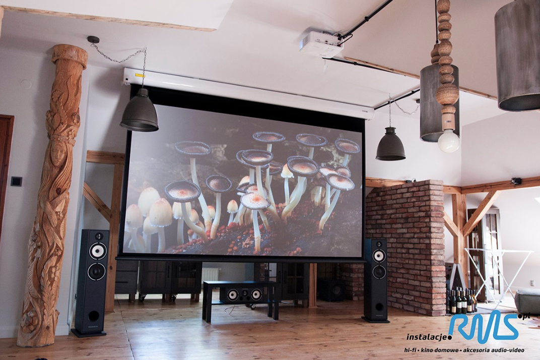 Jednak kino domowe to nie tylko doznania dźwiękowe, ale i wizualne. O jakość w tym zakresie zadba projektor JVC 4K Ultra HD, który dostarczy wysoki kontrast i jasność oraz reprodukcję koloru na najwyższym poziomie. Obraz wyświetlany będzie na ekranie ramowym Screen Research.