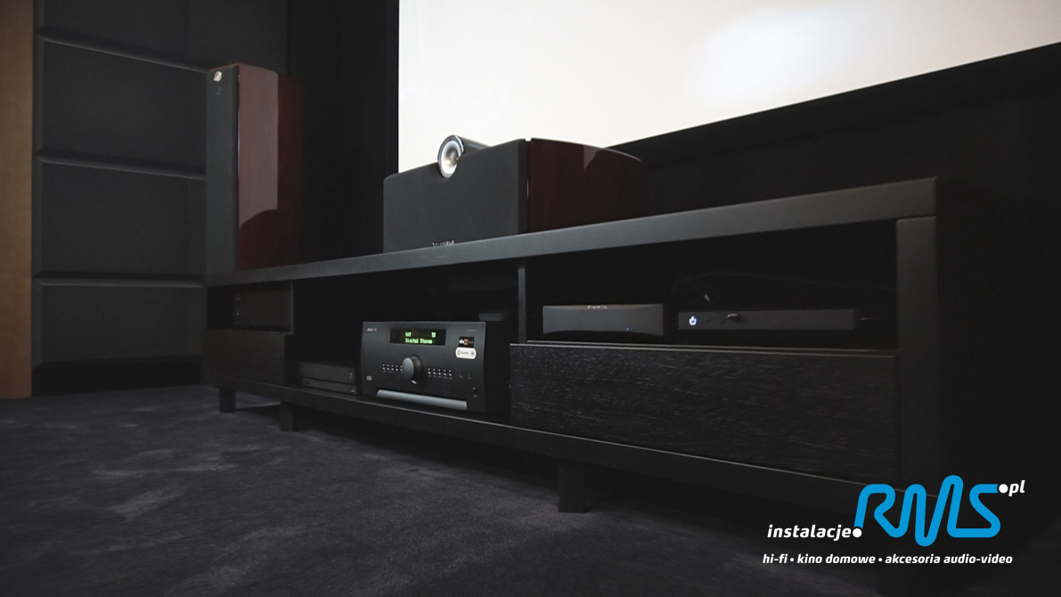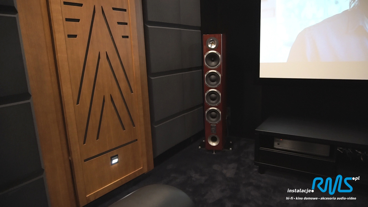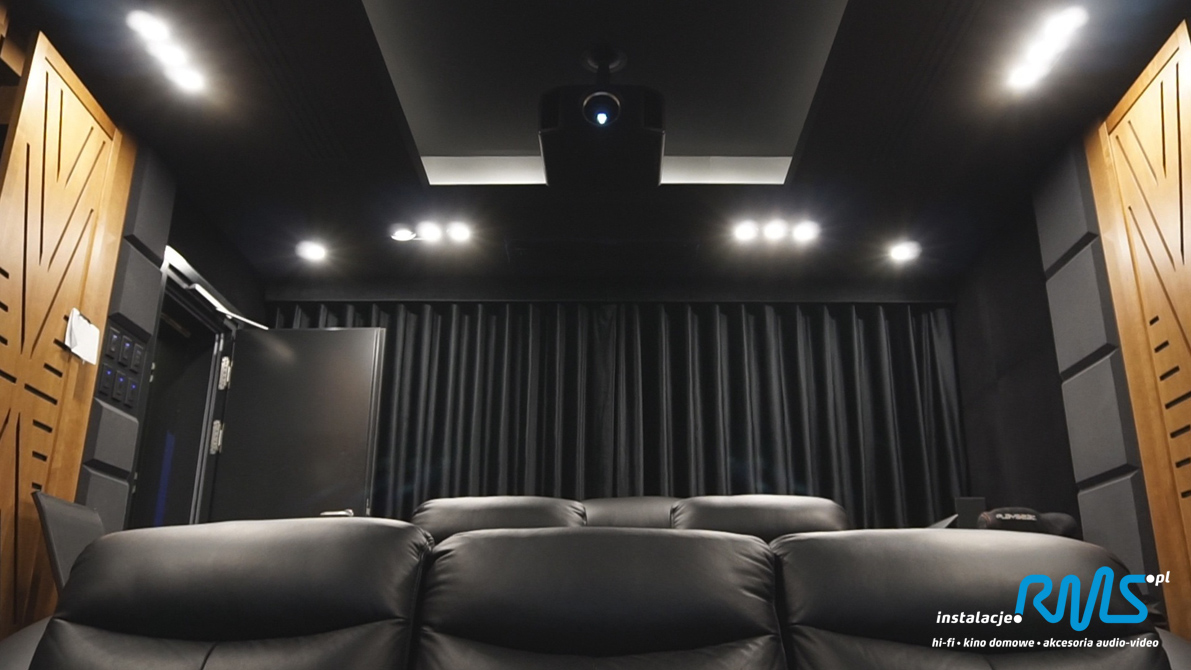 Najpierw na etapie budowy robimy projekt, prowadzimy kable i inne niezbędne elementy potrzebne do uruchomienia systemu. Robimy pomiary akustyczne i przeprowadzamy adaptację akustyczną pomieszczenia. W tym wypadku zastosowaliśmy zarówno panele rozpraszające jak i pochłaniające. Następnie biorąc pod uwagę metraż, budżet i przeznaczenie, dobieramy optymalną konfigurację sprzętu audio i video. Estetykę i funkcjonalność zaproponowanych rozwiązań konsultujemy także z projektantami wnętrz.