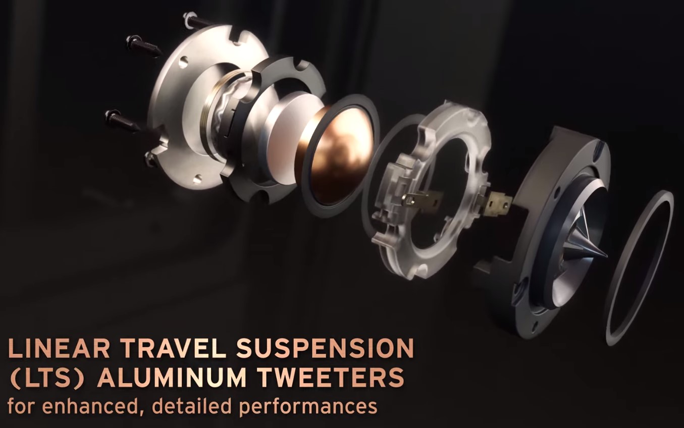 Głośnik wysokotonowy LTS z niezwykle sztywnym i lekkim zawieszeniem Kapton ® gwarantuje wysoką wydajność, oraz poprawę rozdzielczości i szczegółowości dźwięku.
