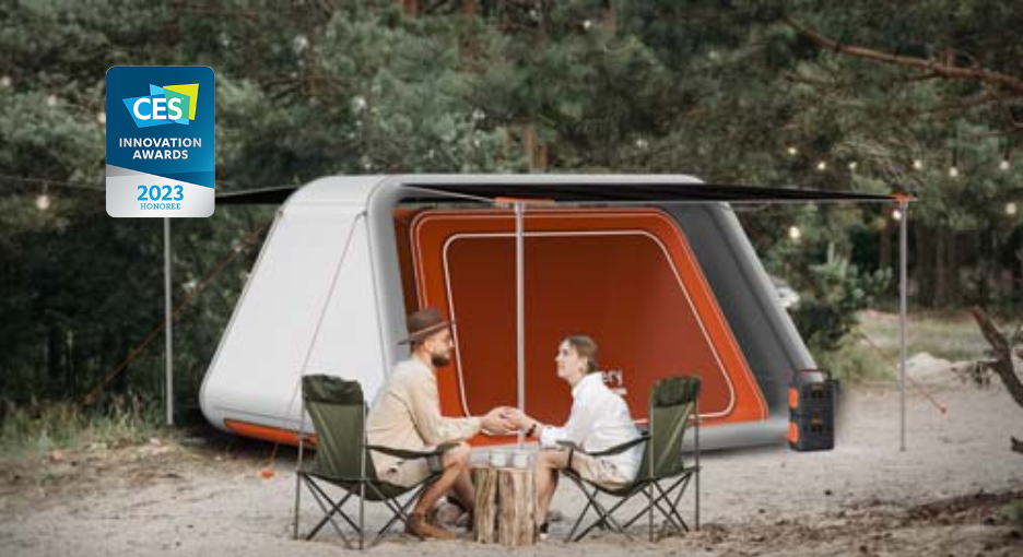 Marka Jackery zaprezentowała szeroką ofertę rozwiązań mobilnego zasilania, w tym Jackery LightTent-AIR, który zdobył nagrodę Innowacji CES. Nadmuchiwany namiot z funkcją wytwarzania energii fotowoltaicznej w połączeniu z elastycznymi ogniwami słonecznymi z arsenku galu może być używany do biwakowania przez nawet 5 osób. Całkowita moc wyjściowa akumulatora wynosi 1200 W, co może szybko zaspokoić zapotrzebowanie na energię elektryczną użytkowników.